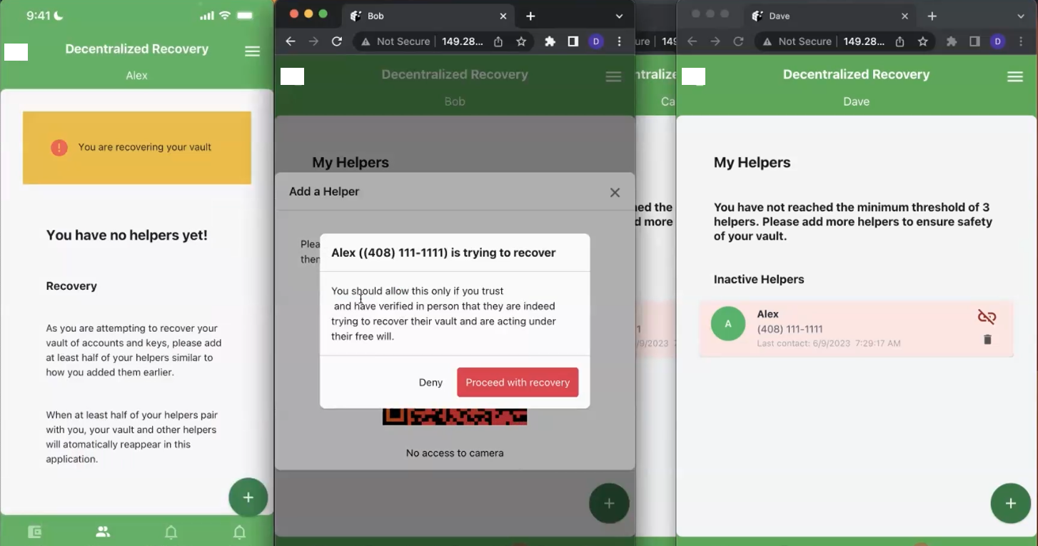 Once a secret has been protected with a DeRec Protocol-compliant application, see what it looks like for a user to recover that secret in this step-by-step demonstration of a typical DeRec user experience. This is part 2 of a 2-part series.